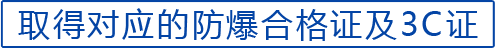 防爆等級(jí):ExdⅡBT4 Gb / ExdbⅡBT4 Gb,取得國(guó)內(nèi)防爆合格證及3C認(rèn)證,國(guó)內(nèi)、IECEx國(guó)際認(rèn)證及ATEx歐盟認(rèn)證。